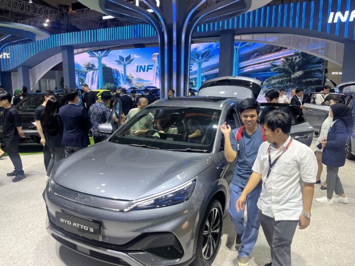 pengunjung dapat melihat langsung unit display di booth BYD serta merasakan pengalaman berkendara melalui area test drive eksklusif yang disediakan.