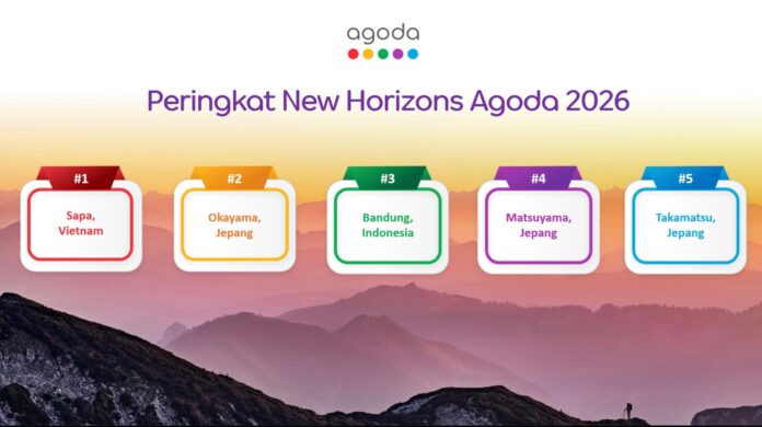 Jakarta, 7 Januari 2026 – Bandung berhasil masuk daftar tiga besar destinasi wisata populer di Asia, berdasarkan peringkat New Horizons terbaru dari platform perjalanan digital Agoda. Di tingkat nasional, Bandar Lampung tercatat sebagai destinasi dengan pertumbuhan tercepat untuk menarik wisatawan mancanegara. Sementara Garut muncul di posisi teratas sebagai destinasi domestik yang paling diminati, dan Shenzhen menunjukkan pertumbuhan kuat sebagai tujuan wisata luar negeri bagi wisatawan Indonesia.
