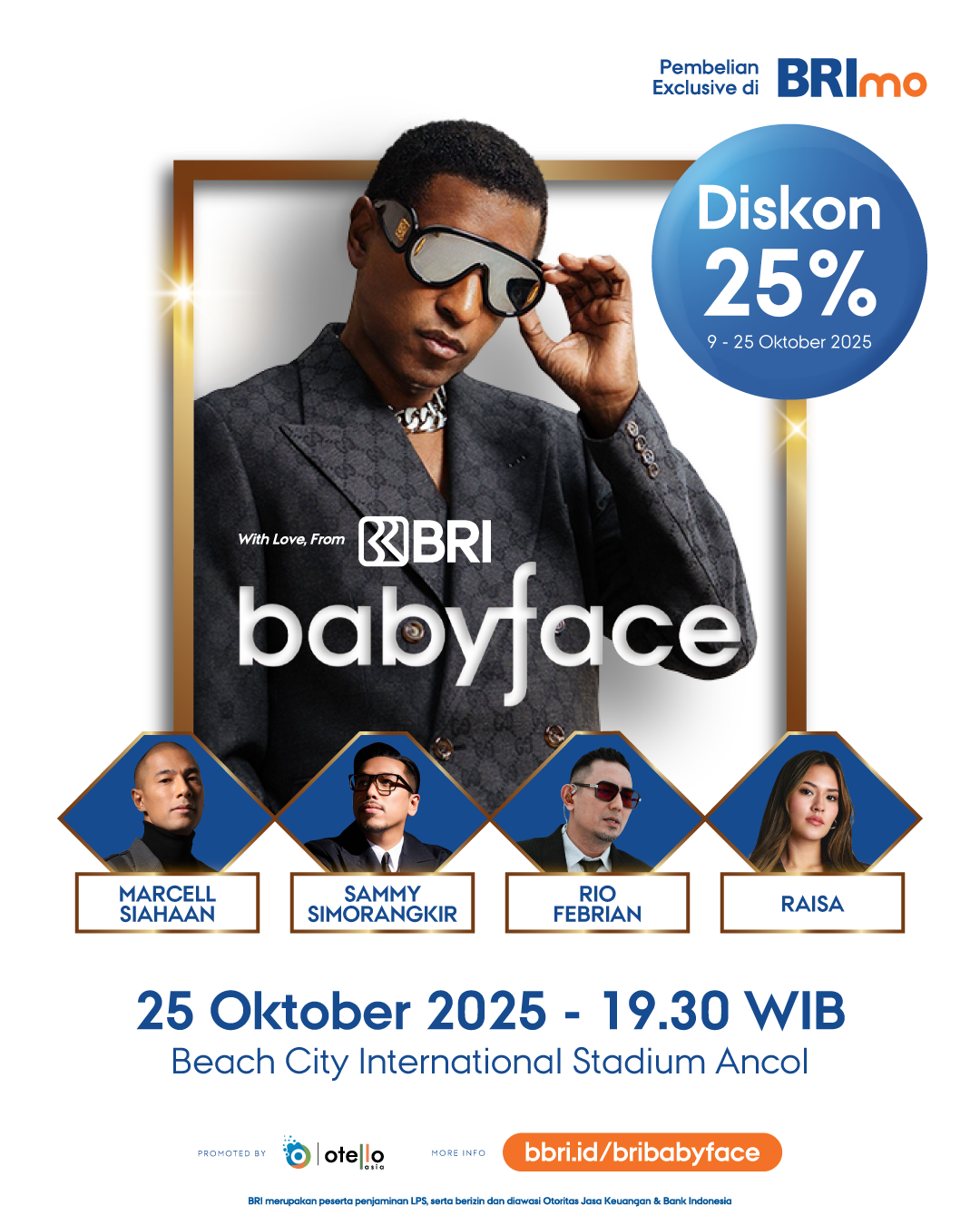 Sementara itu, Sysan Ibrahim, CEO Otello Asia, menyampaikan apresiasinya terhadap kolaborasi bersama BRI. “Dengan dukungan With Love From BRI, kami dapat menghadirkan kesempatan spesial bagi penonton untuk menikmati konser Babyface dengan harga lebih terjangkau. Cukup dengan bertransaksi melalui BRImo, penonton bisa mendapatkan potongan harga 25% untuk semua kategori tiket selama periode 9 hingga 25 Oktober 2025. Ini menjadi bentuk apresiasi kami kepada penggemar yang sudah lama menantikan Babyface kembali ke Jakarta,” jelasnya.