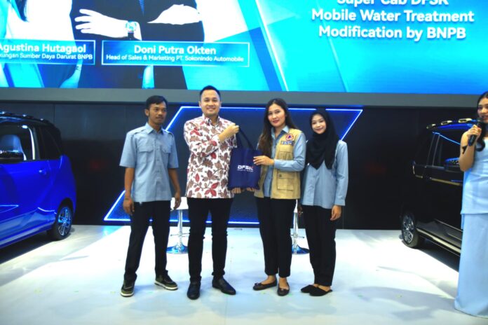 Jakarta – PT Sokonindo Automobile selaku Agen Pemegang Merek DFSK di Indonesia menghadirkan DFSK Super Cab sebagai kendaraan pendukung unit water treatment yang digunakan oleh Badan Nasional Penanggulangan Bencana (BNPB) dalam operasional penanggulangan bencana. Kendaraan ini dimodifikasi untuk menunjang distribusi dan pengolahan air bersih di wilayah terdampak, dengan tetap mempertahankan seluruh spesifikasi teknis unggulannya.