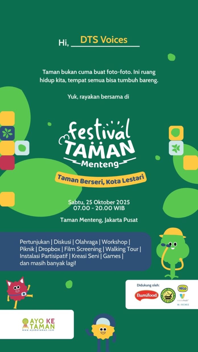 Panggung Seru DTS Voices di Festival Taman 2025, diisi oleh DEWI (pelatih marching band/pengusaha kuliner) dan BAYU (karyawan) pada vokal, FERY (guru musik/personil band G-Pluck) dan BAGAS (karyawan) pada gitar, FACHRI (guru musik, pelatih marching band, motor kelompok Pojok Perkusi) pada bass, serta DHIKA (karyawan) pada cajon.
