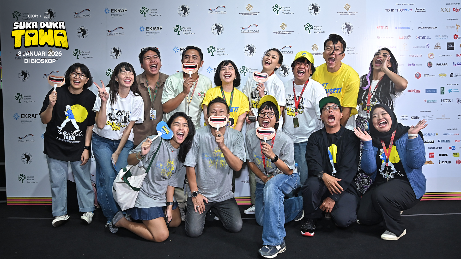 Ikuti perkembangan terbaru dari film Suka Duka Tawa persembahan BION Studios dan Spasi Moving Image melalui akun-akun media sosial resmi.