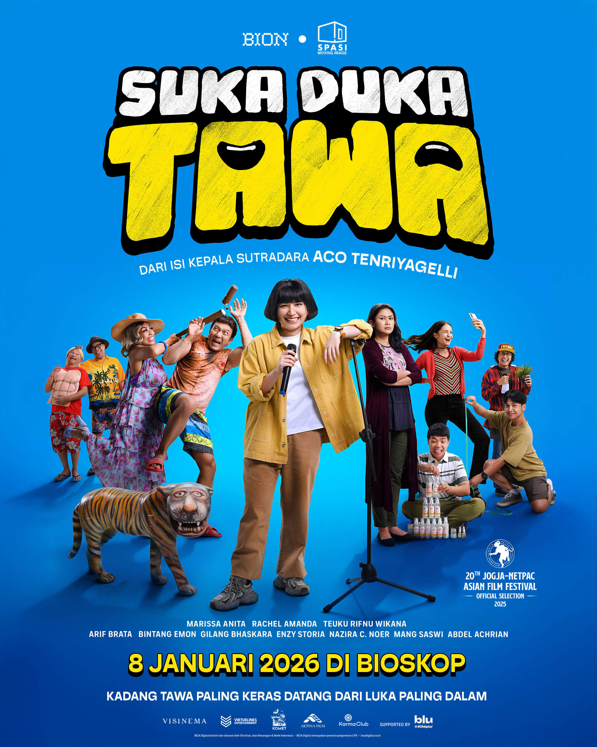 “JAFF sudah menjadi ruang saya tumbuh sebagai filmmaker. Film pendek pertama dan series pertama saya diputar di JAFF, saya juga banyak bertemu dengan senior juga mentor-mentor yang saya kagumi di festival ini, jadi sungguh sebuah kehormatan untuk bisa memutar film pertama saya sebagai penutup JAFF 2025. Setelah menontonnya di JAFF 20, saya berharap penonton bisa memiliki harapan baru dengan hidupnya. Film ini berbicara banyak tentang luka dan menertawakan luka, harapannya penonton bisa keluar dari bioskop lalu berani memikul juga menerima luka mereka sebagai proses bertumbuh dan terus kembali menjalani hidup dalam tawa,” tambah Aco.