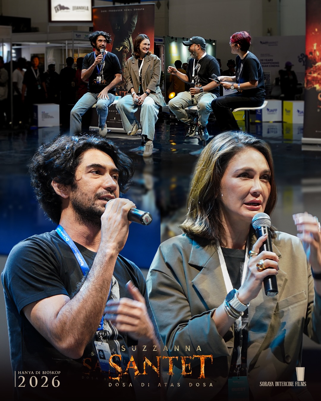 Yogyakarta — Soraya Intercine Films mempersembahkan official teaser trailer 2 film horor mendatang SUZZANNA: SANTET Dosa Di Atas Dosa di JAFF Market 2025. Teaser trailer 2 menampilkan dialog yang dibawakan oleh Luna Maya dan Reza Rahadian. Di teaser ini juga ditampilkan Luna Maya dan Reza Rahadian berada dalam posisi karakter yang bertentangan.