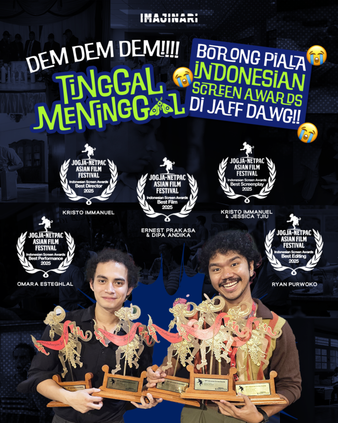 Jakarta – Film komedi getir dari rumah produksi Imajinari, Tinggal Meninggal (Better Off Dead) kembali membuktikan bahwa film sederhana, jujur, dan absurd juga memiliki tempat dalam sinema Indonesia. Setelah penayangannya di Jogja-NETPAC Asian Film Festival (JAFF) 2025 pada 4 Desember 2025, karya debut Kristo Immanuel ini berhasil menyapu bersih lima penghargaan Indonesian Screen Awards pada malam penutupan festival pada Sabtu, 6 Desember 2025.