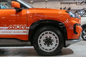 AION V yang tampil gagah dengan konsep “SUV Adventure Culture” dirancang untuk membuktikan kapabilitas mobil listrik saat berpetualang. Seluruh modifikasi difokuskan untuk meningkatkan fungsionalitas dengan ban Accelera yang siap dengan medan yang menantang, dan keamanan saat berkendara jarak jauh: