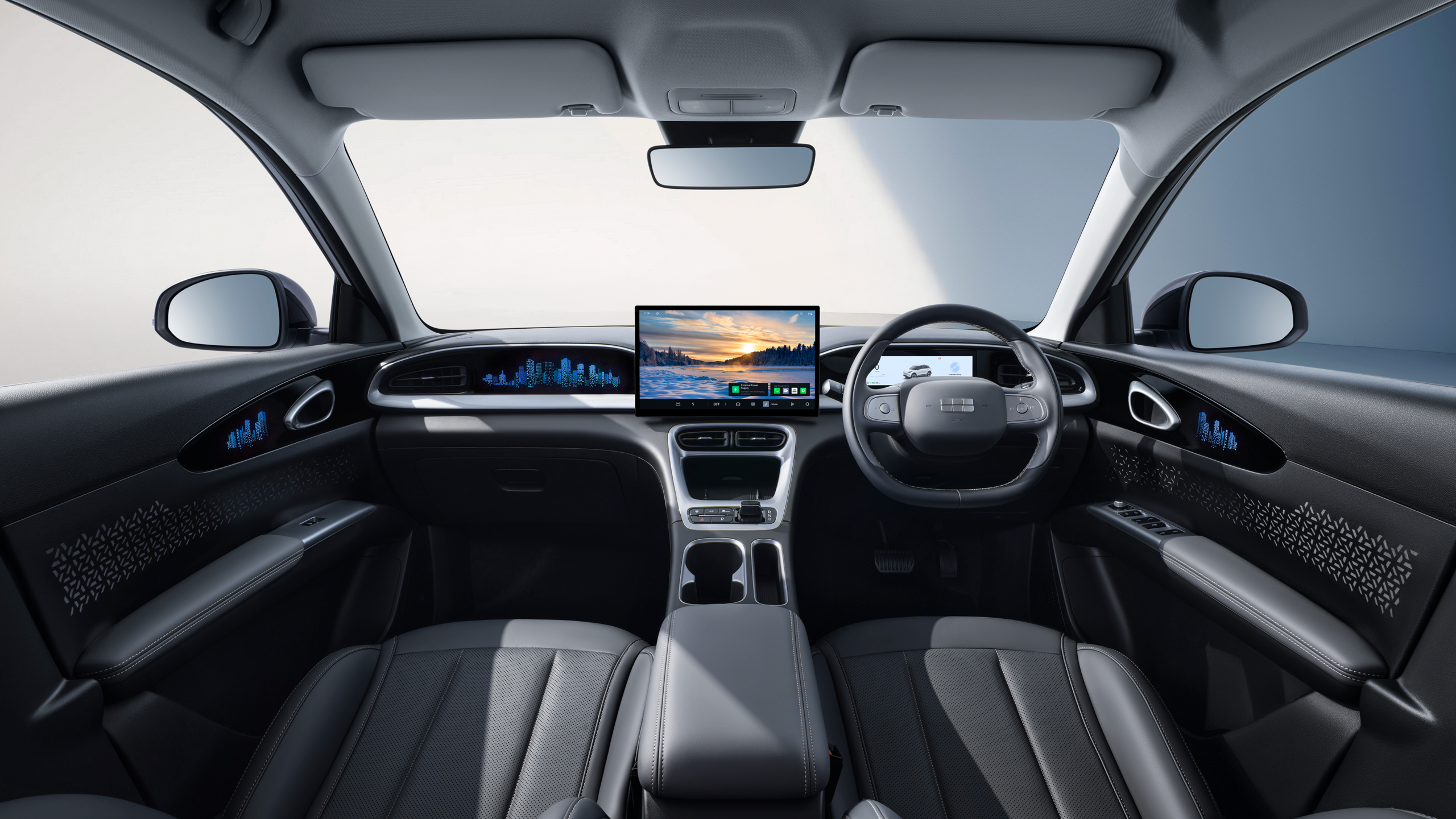 Dengan dimensi panjang 4.135 mm, lebar 1.805 mm, tinggi 1.580 mm, wheelbase 2.650 mm, serta ground clearance 162 mm, Geely EX2 menawarkan proporsi yang sesuai untuk penggunaan di perkotaan. Kabin yang luas memberikan kenyamanan ekstra bagi pengemudi dan penumpang, dengan 36 ruang penyimpanan yang tersebar di berbagai area kabin. Geely EX2 juga dilengkapi dengan front trunk berkapasitas 70 liter untuk kebutuhan penyimpanan tambahan. Di bagian belakang, tersedia bagasi berkapasitas 375 liter yang dapat diperluas hingga 1.320 liter saat kursi baris kedua dilipat, memberikan fleksibilitas untuk berbagai kebutuhan.