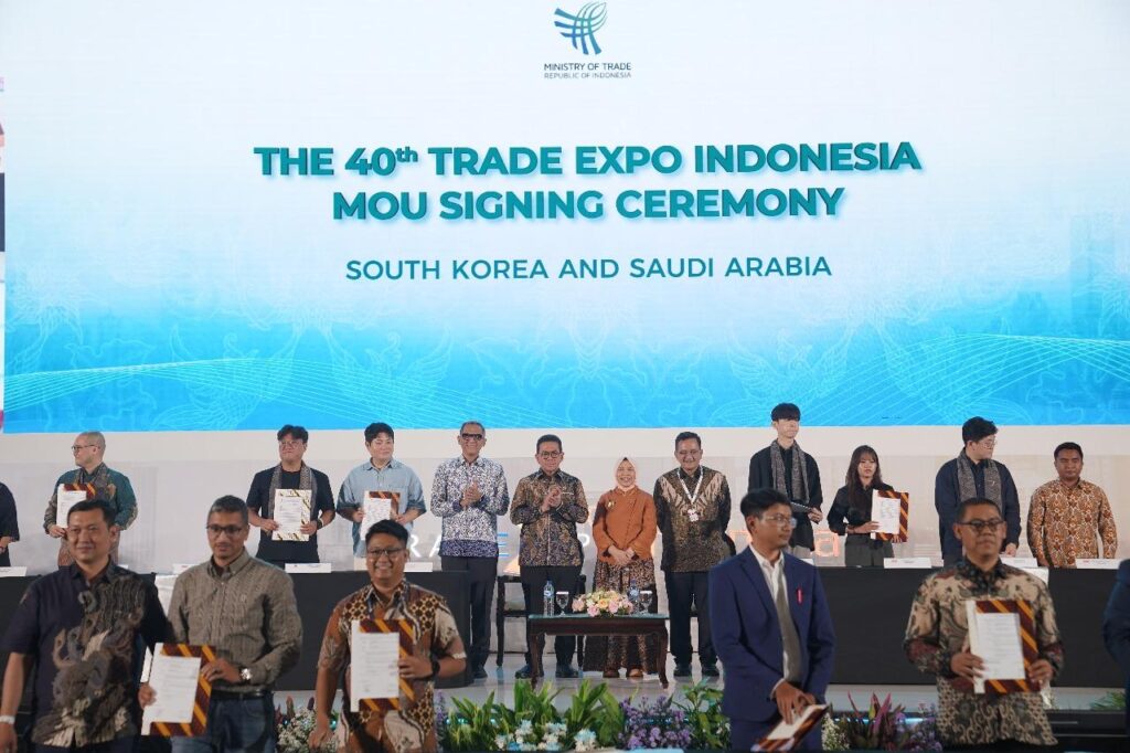 Kabupaten Tangerang – Menteri Perdagangan Budi Santoso menyaksikan penandatanganan 131 nota kesepahaman (MoU) antara pelaku usaha Indonesia dan para buyer luar negeri dengan nilai USD 9,98 miliar. Produk-produk dengan MoU terbanyak meliputi batu bara, investasi energi biru, emas, biodiesel, dan furnitur. Penandatanganan MoU berlangsung pada Rabu, (15/10) sebagai salah satu bagian dari rangkaian hari pertama pameran Trade Expo Indonesia (TEI) 2025 di Indonesia Convention Exhibition (ICE) BSD City, Kabupaten Tangerang, Banten.