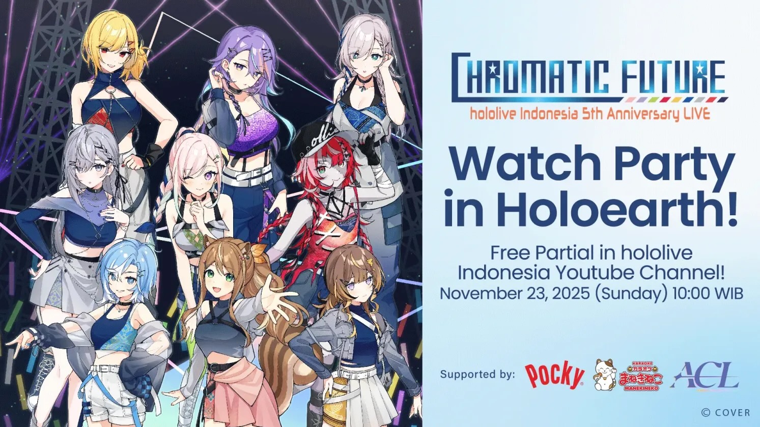 Acara “hololive Indonesia 5th Anniversary LIVE – Chromatic Future – Watch Party in Holoearth” akan berlangsung dalam periode terbatas sebagai berikut: