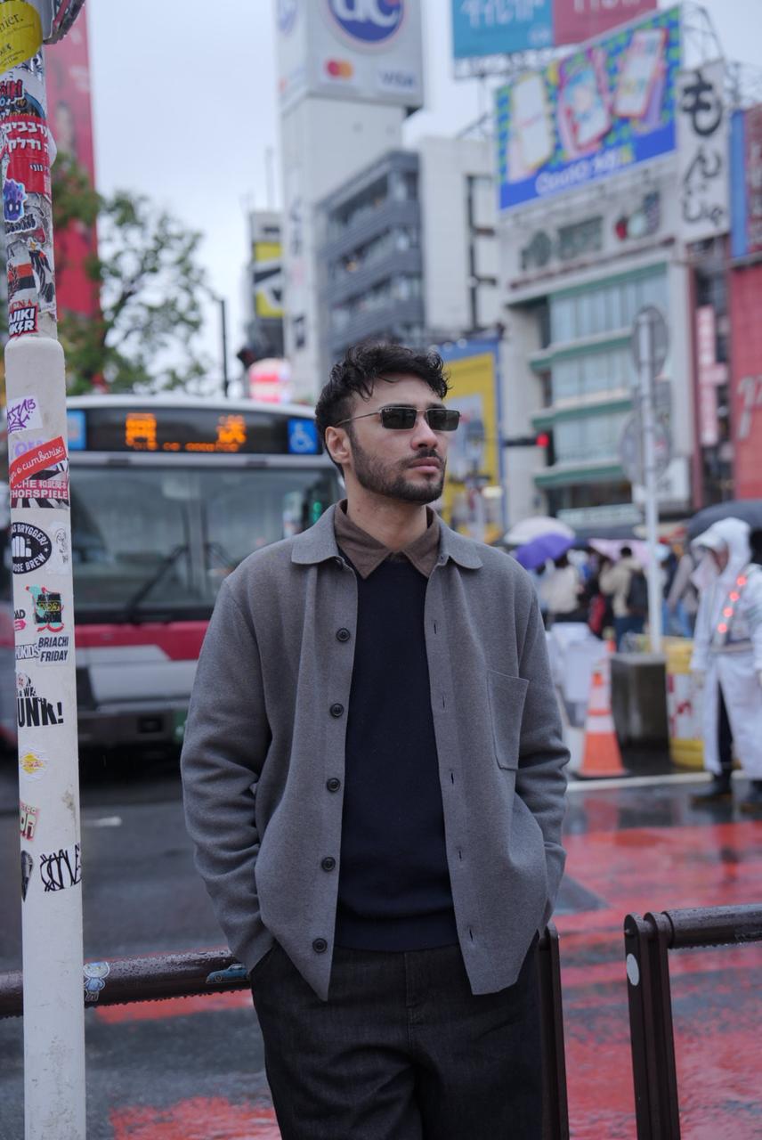 Menjelajahi Shibuya di suhu sekitar 17°C, Refal memilih Sweater Washable Milano Rib Kerah Bulat sebagai dalaman yang dilayer diatas kemeja flannel cokelat, dan outer Cardigan Milano Rib Kerah Kemeja sebagai lapisan tambahan yang tak hanya hangat, namun juga memberi kesan statement untuk Refal. Kombinasi dua item rajut ini menciptakan tampilan yang sleek namun tetap kasual, ideal untuk berjalan santai di tengah hiruk-pikuk kota. Teksturnya yang halus memberi kesan rapi tanpa terasa berat, menjadikan layering di musim transisi tetap terasa nyaman.