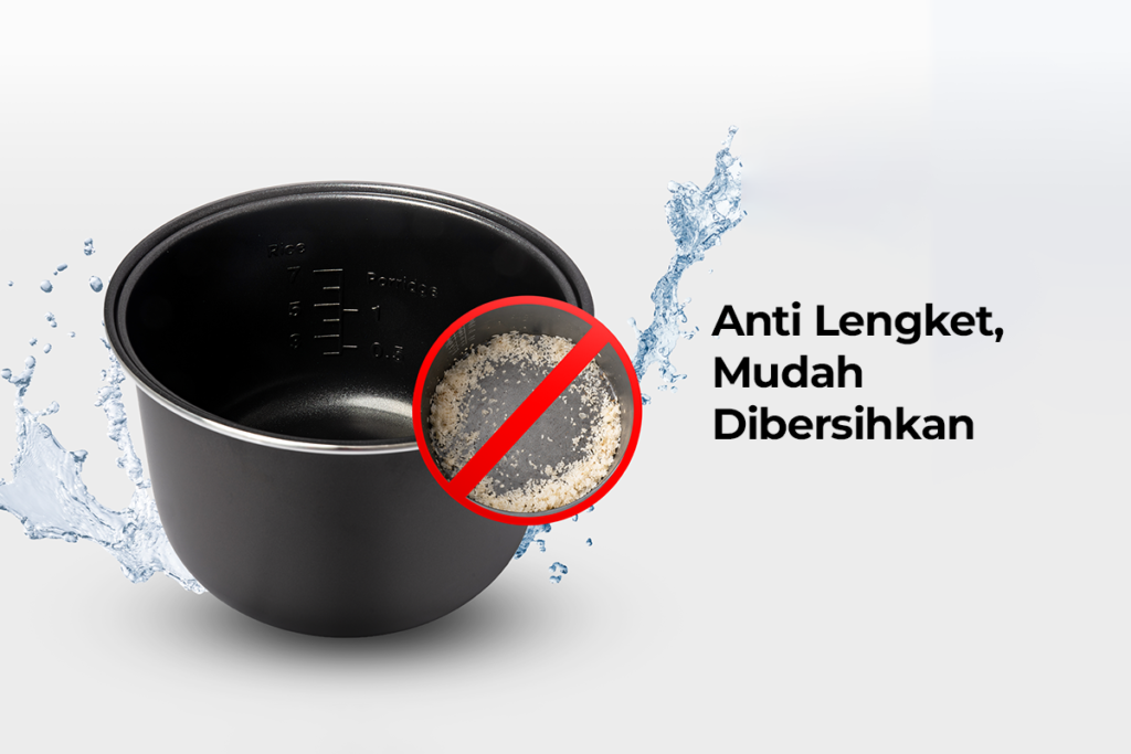 Dari sisi kesehatan dan keamanan, perangkat ini menggunakan stainless steel tray food grade 304 yang dirancang khusus untuk proses low carbo dan kukus. Material ini tidak hanya aman digunakan, tetapi juga mendukung proses pengurangan kadar gula pada nasi secara optimal. Sementara itu, lapisan inner pot anti lengket memudahkan proses penggunaan dan pembersihan setelah memasak.