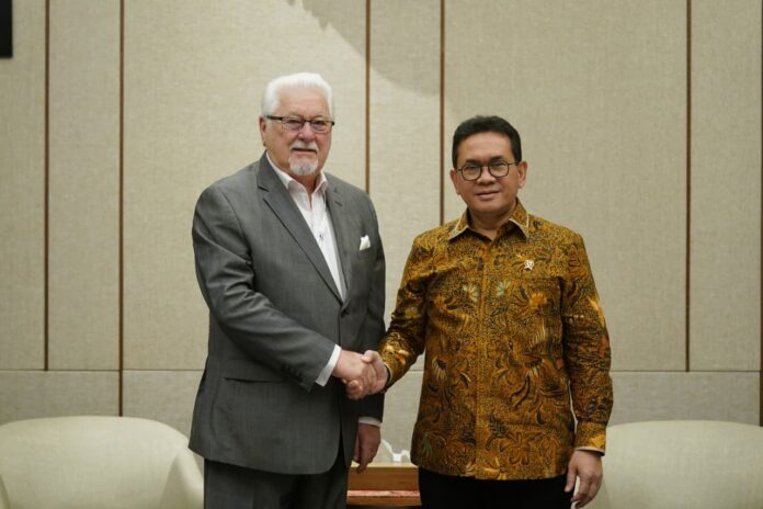 Kabupaten Tangerang– Menteri Perdagangan RI Budi Santoso bertemu dengan Direktur Regional Australia dan Selandia Baru Sorbent Group Australia, Steve Nicholson, hari ini, Kamis, (16/10) di Indonesia Convention Exhibition (ICE) BSD City, Kabupaten Tangerang, Banten. Keduanya membahas penguatan peran Pemerintah Indonesia dalam menjaga keberlangsungan ekspor bubur kayu dan kertas (pulp and paper) ke Australia. Dalam hal ini, buyer Australia meminta Pemerintah Indonesia untuk mendorong Pemerintah Australia membuka dialog dengan pelaku usaha produk kertas Australia.