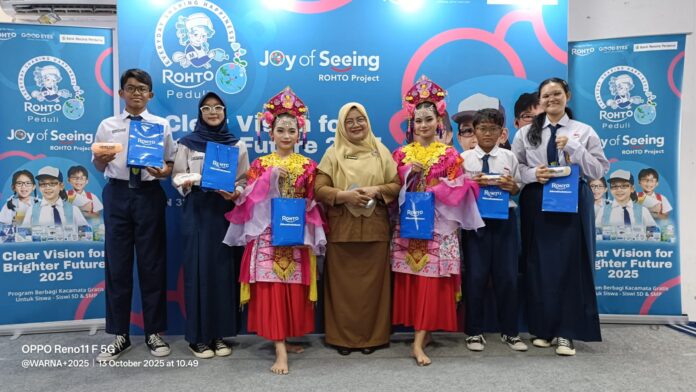 Warnaplus, Tangerang — Dalam rangka memperingati Hari Penglihatan Dunia (World Sight Day) yang jatuh pada 9 Oktober 2025 serta hari jadi ke-29 perusahaan, PT Rohto Laboratories Indonesia kembali menggelar kegiatan sosial bertajuk ROHTO Peduli. Melalui program CSR “Joy of Seeing – Clear Vision for Brighter Future”, Rohto membagikan 1.200 kacamata gratis kepada pelajar SD dan SMP di empat kota besar di Indonesia.
