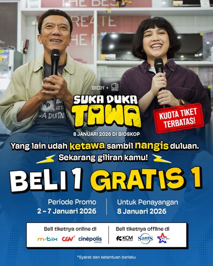 Suka Duka Tawa tayang mulai 8 Januari 2026 di bioskop IndonesiaTiket ATS Beli 1 Gratis 1 sudah bisa dibeli hari ini