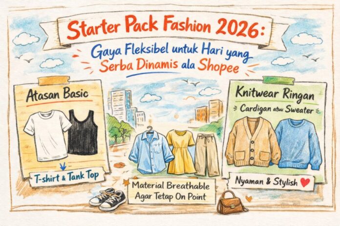 tampilan yang lebih statement. Oleh karena itu, agar lebih bijak dalam berbelanja fashion, penggunaan kumpulan item esensial melalui Starter Pack Fashion 2026 ala Shopee dapat menjadi inspirasi. Setiap item punya fungsi, fleksibilitas, dan cerita. Karena di era ini, gaya terbaik adalah yang bergerak seirama dengan hidup ringkas, relevan, dan tetap autentik.” (Icho)
