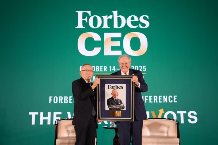 Tadashi Yanai menerima penghargaan secara langsung dari Steve Forbes dalam acara Forbes Global CEO Conference 2025, yang diselenggarakan di Jakarta pada 15 Oktober. Penyerahan penghargaan tersebut dilanjutkan dengan sesi dialog eksklusif antara Tadashi Yanai dan Steve Forbes.